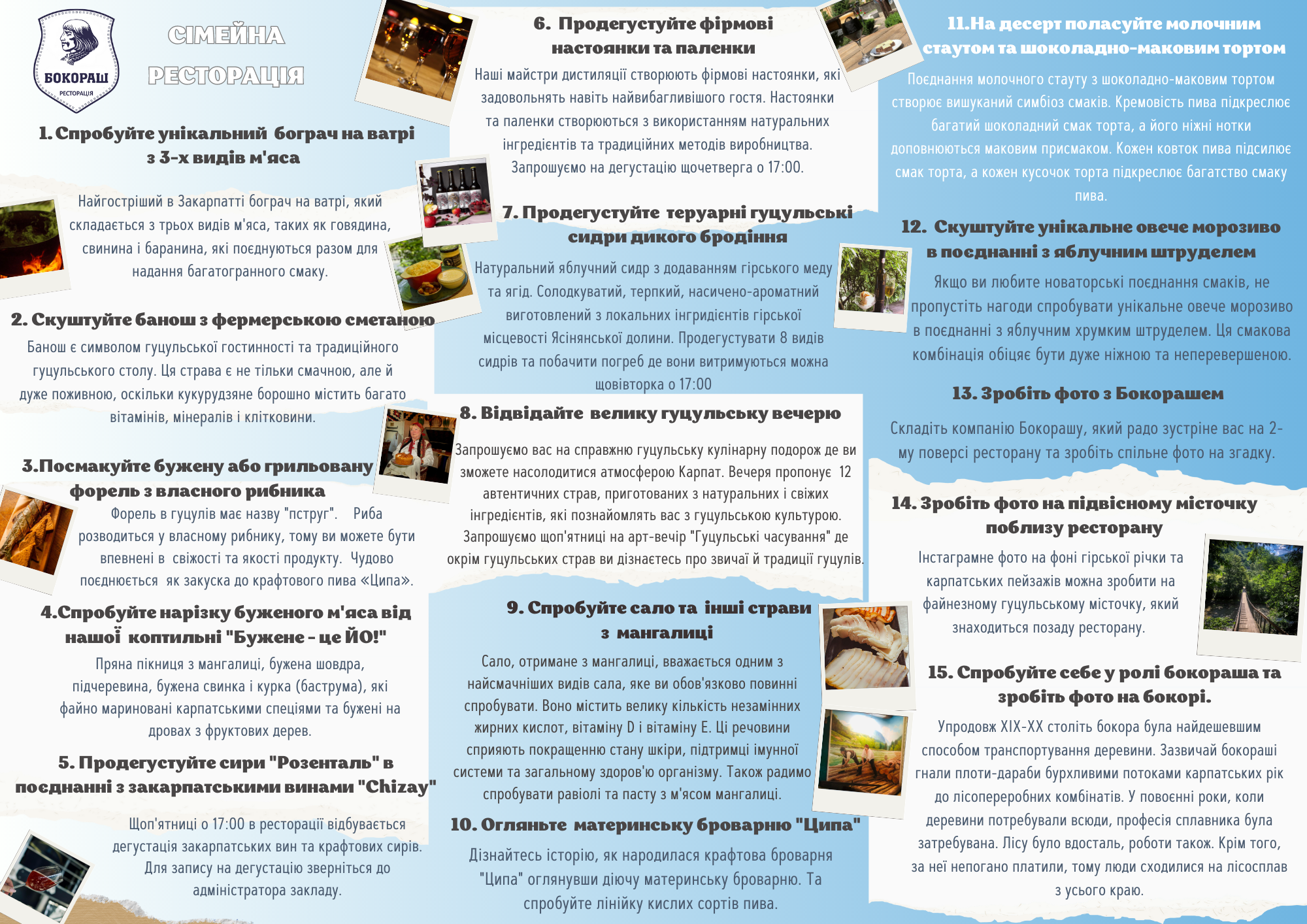 - Спробуй гуцульські настоянки та авторські напої. ("Бокораш")