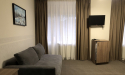 У просторому номері велике двоспальне ліжко, розкладний диван, шафа, санвузол з душовою кабіною. Окрім цього, телевізор з пласким екраном, Wi-Fi, холодильник та фен.