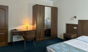 Балкон, санвузол з ванною, зручні шафи з тумбочками, столики, телевізор з плоским екраном, доступ до інтернету – далеко не всі переваги цього номеру. Тут також є холодильник, електричний чайник з горнятками, фен і праска.